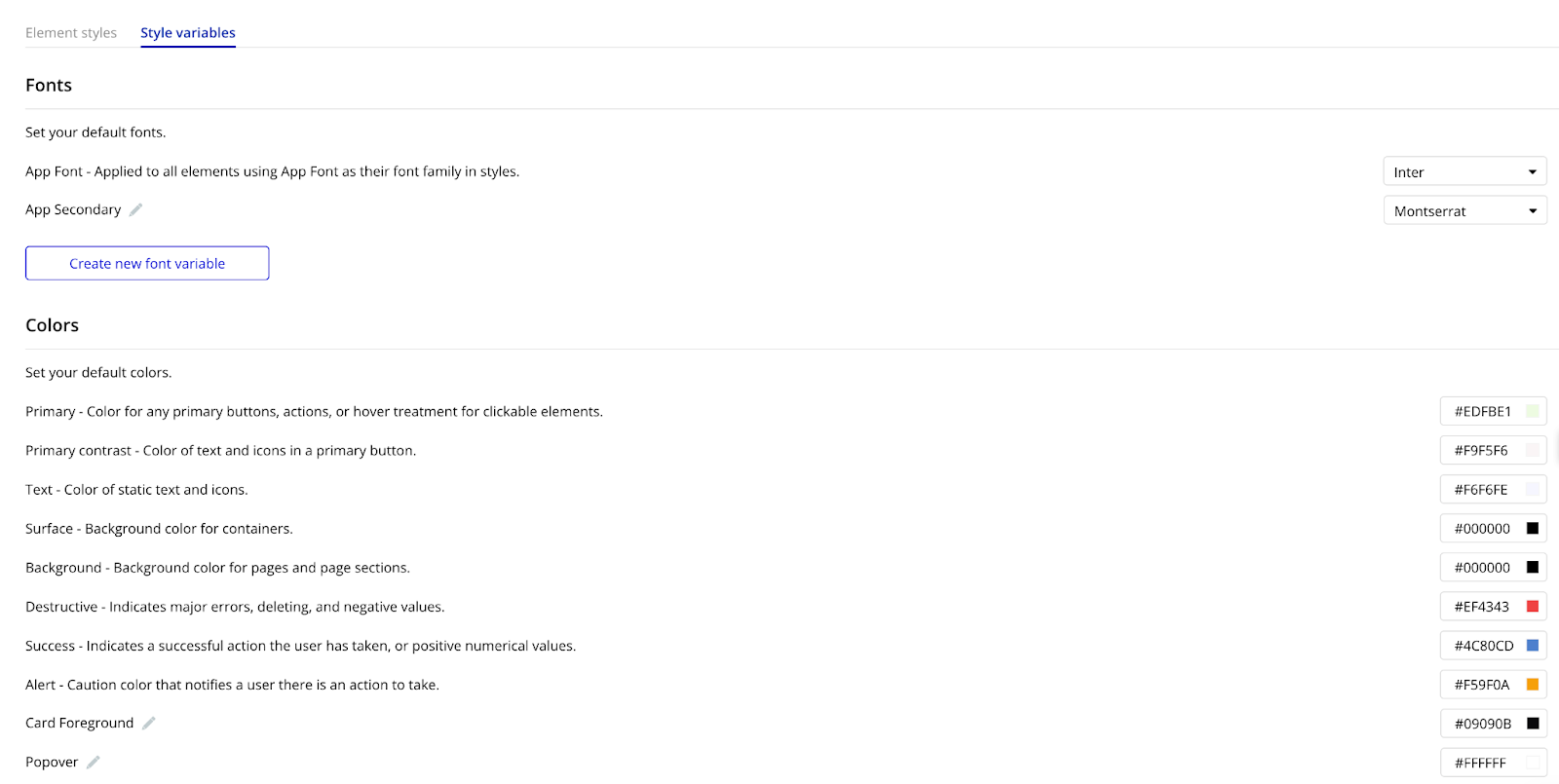 Styles guide the overall look and feel of your app, things like background colors, primary fonts, standard button colors, and so on. Use the Styles tab in the Bubble editor to adjust these variables once, and you’ll see the changes reflected across your entire app.