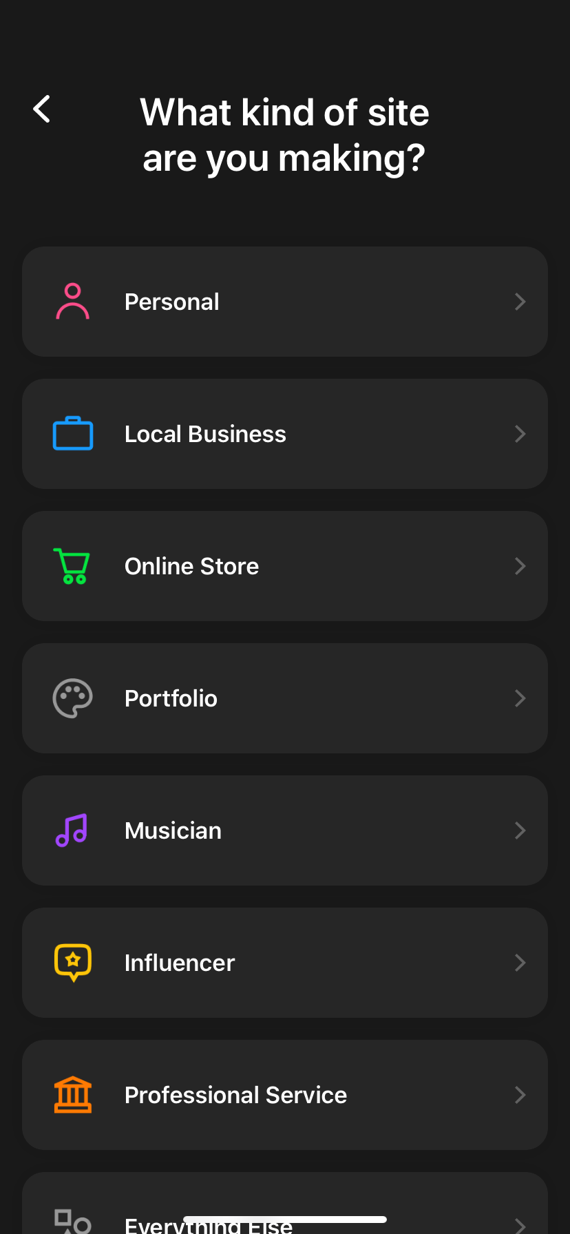When users download the Universe app, they’re given the option to choose a domain name, but can only secure that domain if they choose to sign up for the Pro plan. From here, Universe users have a number of options to choose from when starting their site-building journey, including importing an instagram profile (a useful tool for those who may have an audience in place already). Users can also choose from a variety of templates, including a generic online marketplace, a local business, a portfolio, professional services and more. Once Universe users choose their template they’re prompted to answer a few more questions and can start editing their template.