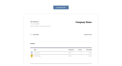 Invoice Page & PDF Dow...