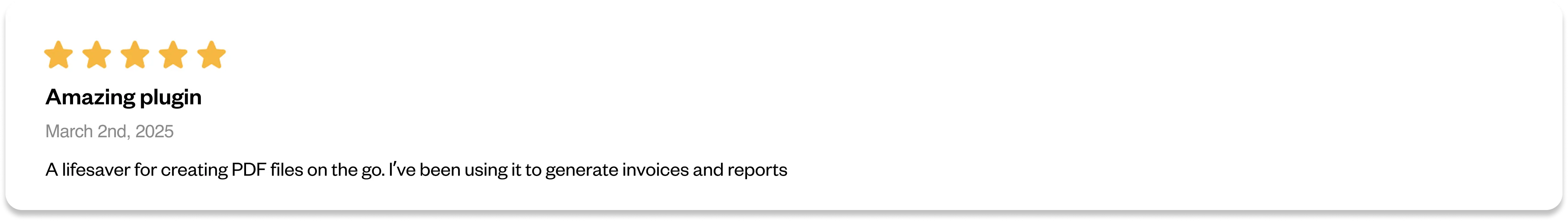Is this plugin suitable for generating invoices or reports?Absolutely. It's ideal for use cases like invoices, receipts, reports, and certificates.