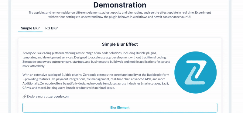 It allows you to apply a dynamic blur effect to any Bubble element—such as text, images, or groups—based on user interactions or workflow triggers.
