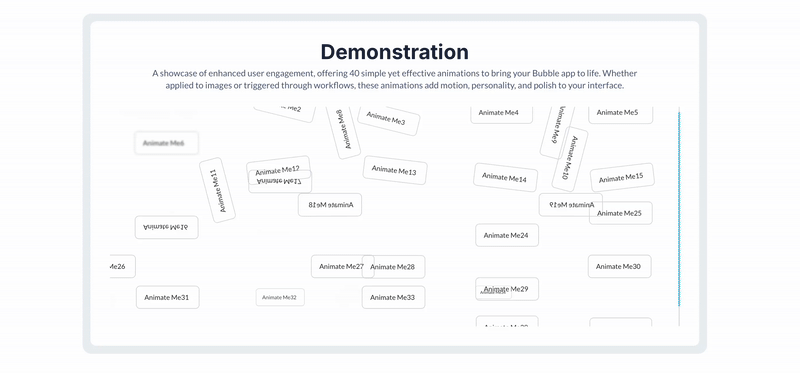 It lets you apply more than 40 different CSS-powered animations—such as bounce, fade, zoom, slide, rotate, and more—to Bubble elements like groups, texts, shapes, images, icons, and buttons.