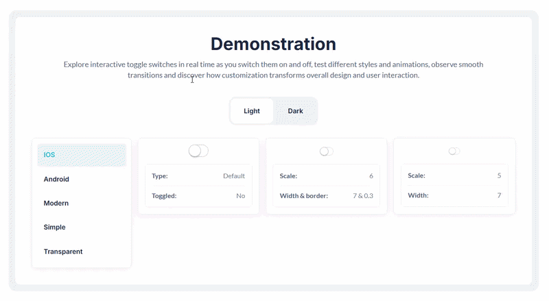 How can I customize the appearance of the toggle switches? Users can customize the size, color, border radius, and font size, among other properties, to match their application's design requirements.
