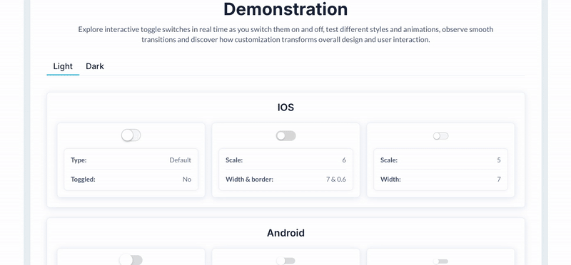 How can I customize the appearance of the toggle switches? Users can customize the size, color, border radius, and font size, among other properties, to match their application's design requirements.