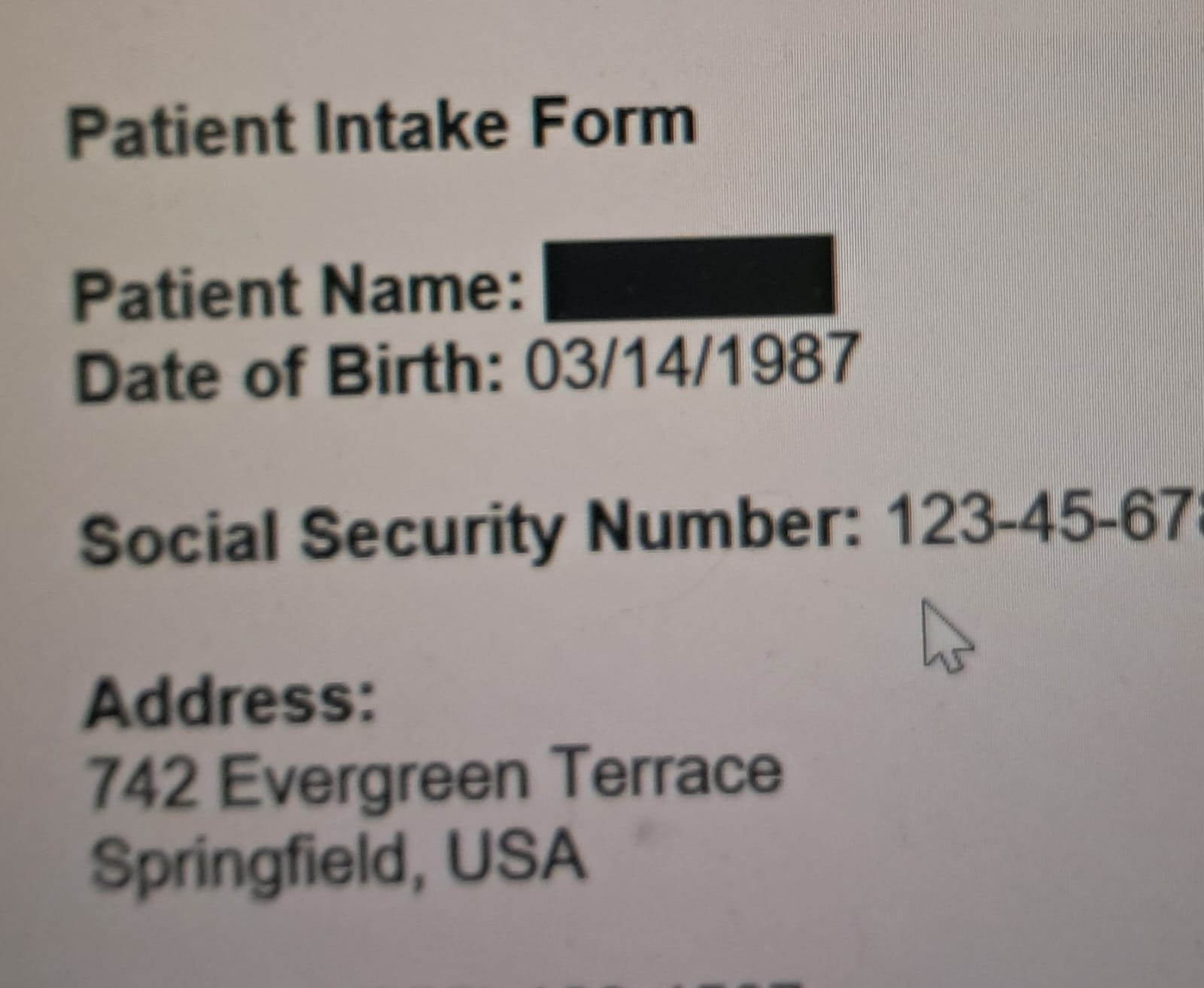 Patient Name: John Doe → John Doe is redacted