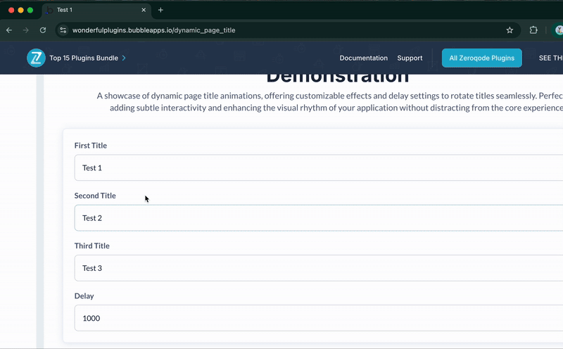 The plugin enables you to create dynamic and animated page titles that change over time in the browser tab, making your app more interactive and engaging.