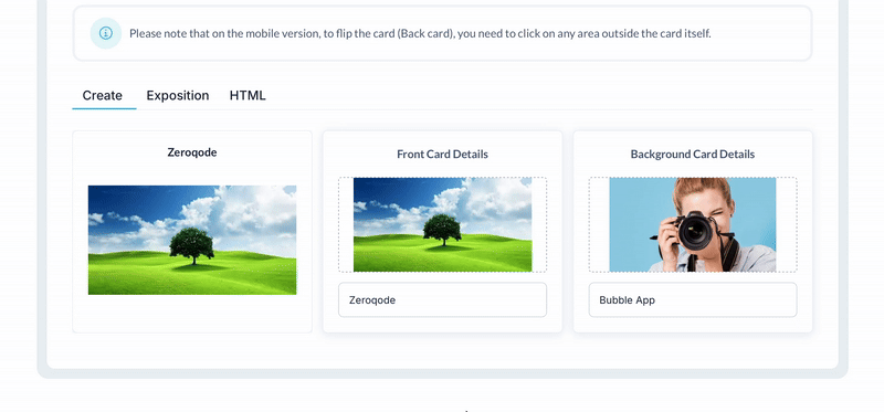 FAQWhat does the Flip Cards for Any Element plugin do?It allows you to add a flipping animation effect to any Bubble element, such as groups or images, creating an interactive front-to-back flip transition.