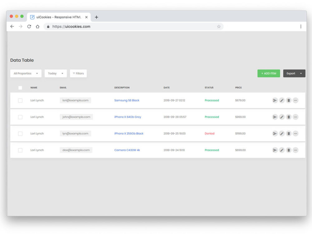 * Responsive and clean table design with customizable page size.