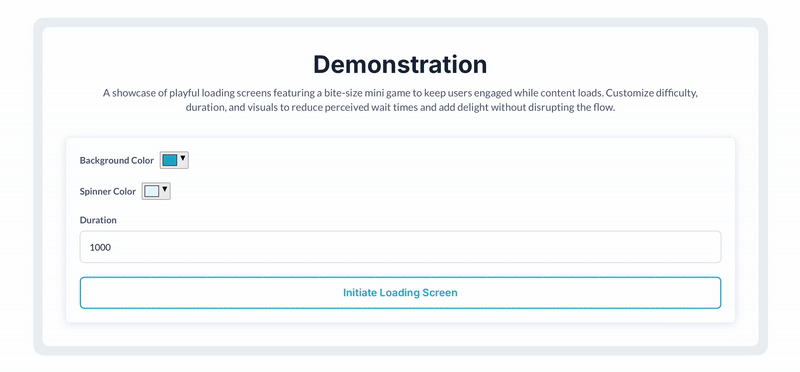 Once the duration expires (or the game ends), the loading screen closes and gives way to your main content.