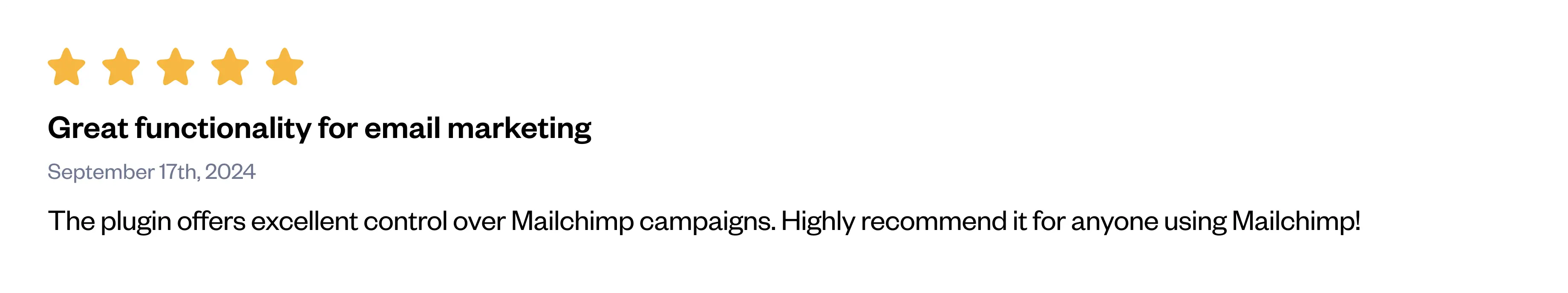 The plugin offers excellent control over Mailchimp campaigns. Highly recommend it for anyone using Mailchimp!