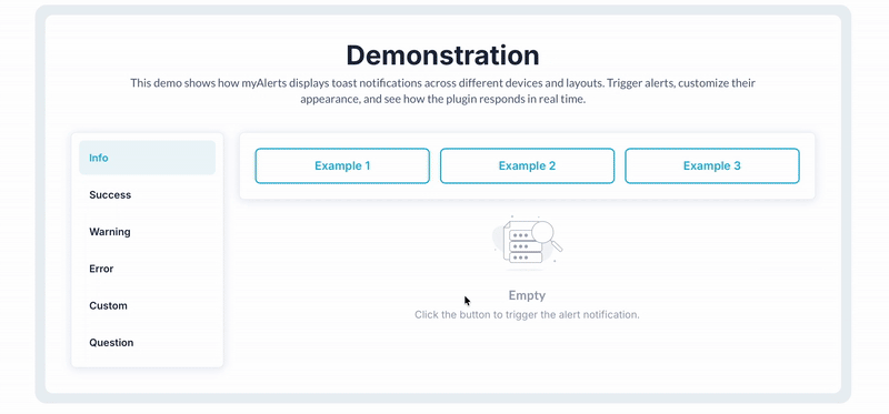 - Does the MyAlerts! Plugin support different types of alerts, such as success, error, or warning messages?