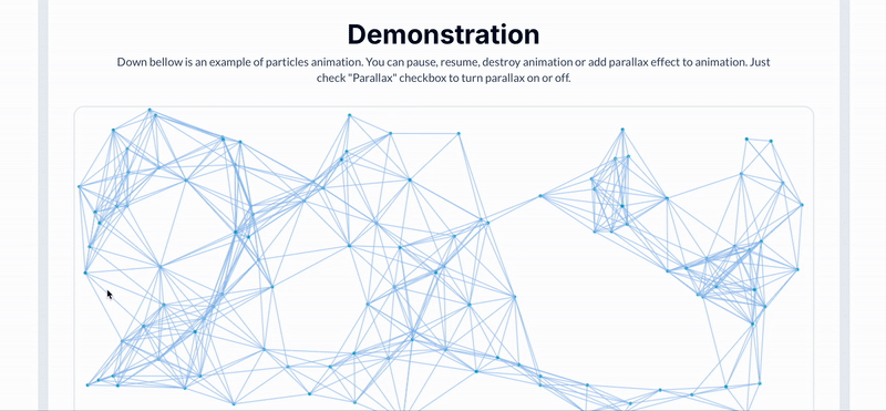 You can specify the color of the dots and lines as well as the density of the animation and whether or not there should be a parallax effect.