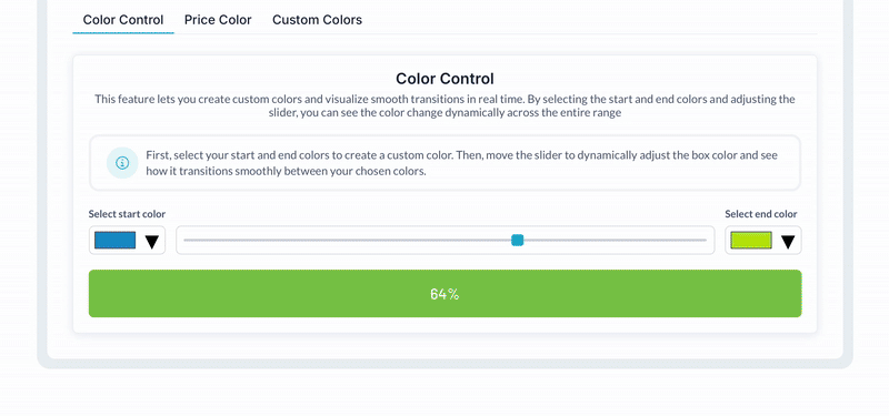 Place the plugin element on your page, define your gradient colors, and input the percentage value. The plugin will output the corresponding color based on the defined gradient.​