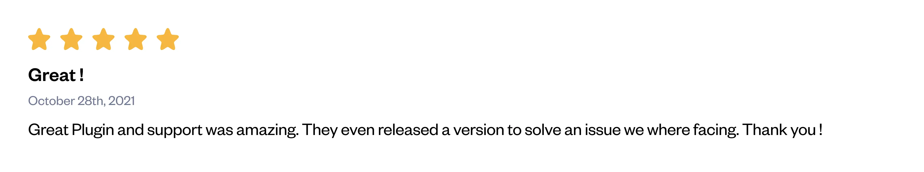 Great Plugin and support was amazing. They even released a version to solve an issue we where facing. Thank you !