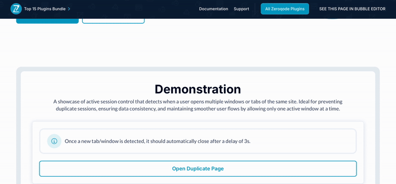 DocumentationWe’ve created a detailed step-by-step guide for the Prevent Duplicate Windows/Tabs Plugin. It includes a comprehensive overview of all features, practical use cases, and answers to frequently asked questions.