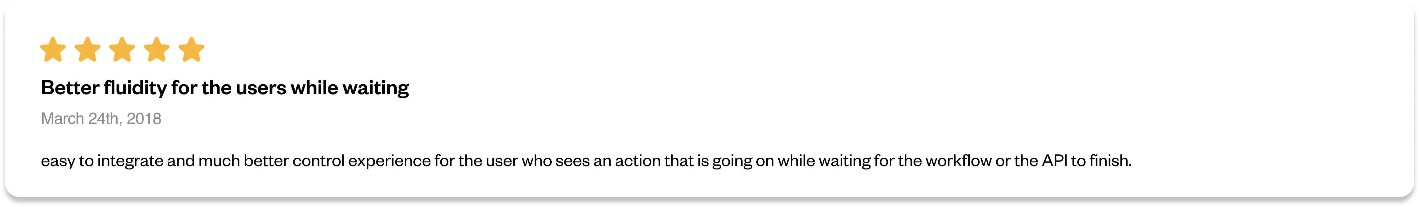easy to integrate and much better control experience for the user who sees an action that is going on while waiting for the workflow or the API to finish.