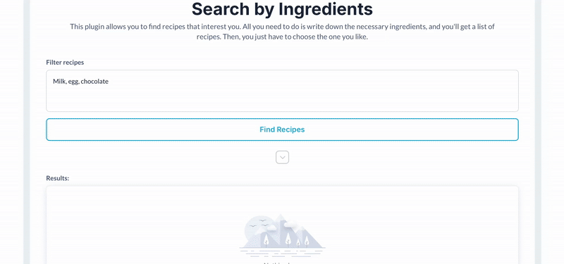 Please refer to the plugin documentation to see how to configure it: https://docs.zeroqode.com/spoonacular-food-api-1c1c669b00ed817fb1acd6223e0e3bde