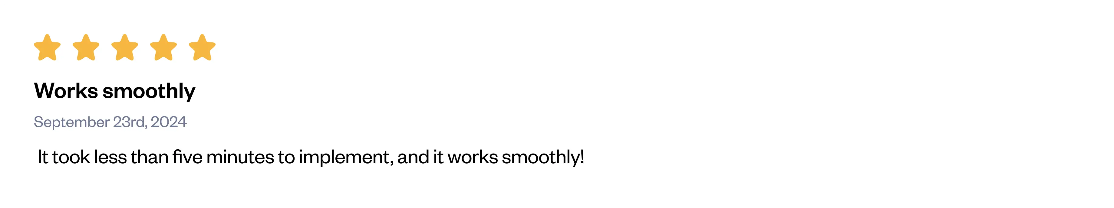 Hello, It’s Anton, from the Zeroqode Support Team. We want to extend our heartfelt thanks once again for taking the time to leave a review. Your feedback is invaluable to us and we are pleased to know that the plugin satisfies your requirements. At Zeroqode, we always prioritize our users, and if there's more we can do to make our clients happy, we're eager to do so. If you have any more suggestions or questions, or if there's anything else you'd like to discuss, please don't hesitate to reach out to us on the forum (https://forum.zeroqode.com/) or directly at [email protected]. Wishing you the best, Anton