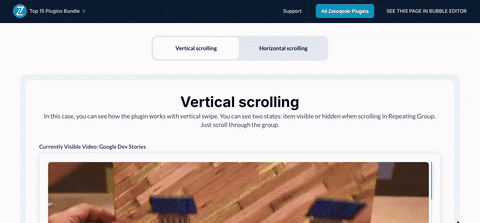 The Repeating Group Visibility Detector plugin enables you to track the visibility of items within a repeating group in real-time. It allows for detection of when an item becomes visible or invisible within the group, as well as when the item is initially loaded. This plugin is useful for creating dynamic interactions based on the visibility of elements, such as lazy loading, triggering animations, or updating data as items scroll into view.
