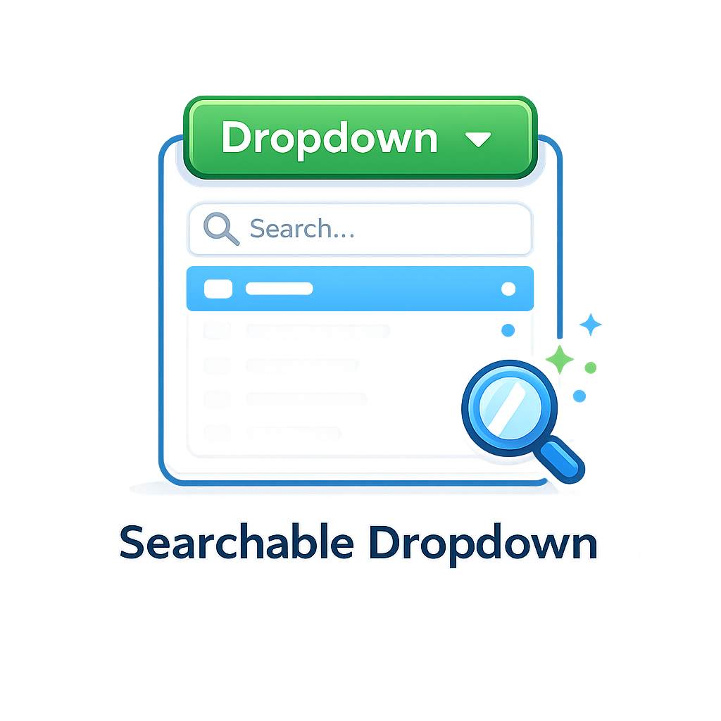 A fully customizable searchable dropdown for Bubble with dynamic data source support, default values, empty state text, hover styling, and exposed selected item state.