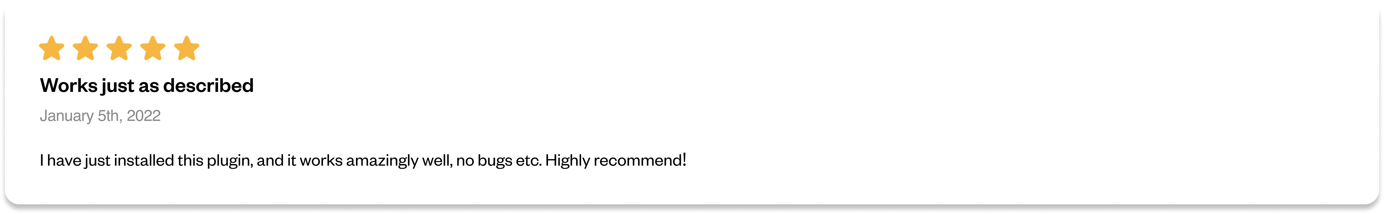 Hello there, Anton here, from the Zeroqode Support Team. Your positive review means a lot to us and it's wonderful to know we could add value for our users. Our team is always ready to assist, so if you have any queries or feedback, don't hesitate to reach out through our forum (https://forum.zeroqode.com/) or directly at [email protected]. Should there be any issues with our plugins, please report them at https://issues.zeroqode.com for prompt support. Thank you once again for your feedback. Kind regards, Anton