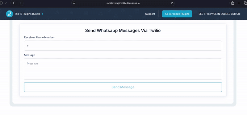 It allows you to send WhatsApp messages from your Bubble app using the Twilio WhatsApp API-to deliver alerts, confirmations, shipping updates, and more.
