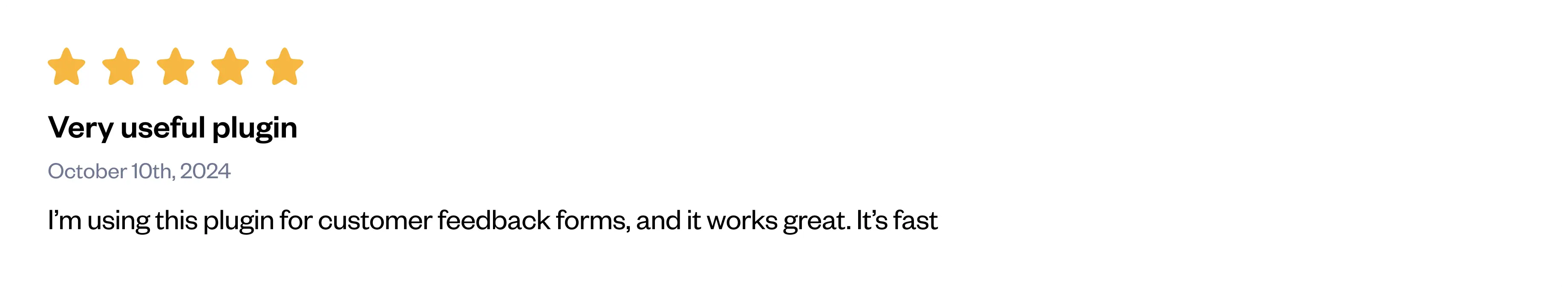 I’m using this plugin for customer feedback forms, and it works great. It’s fast