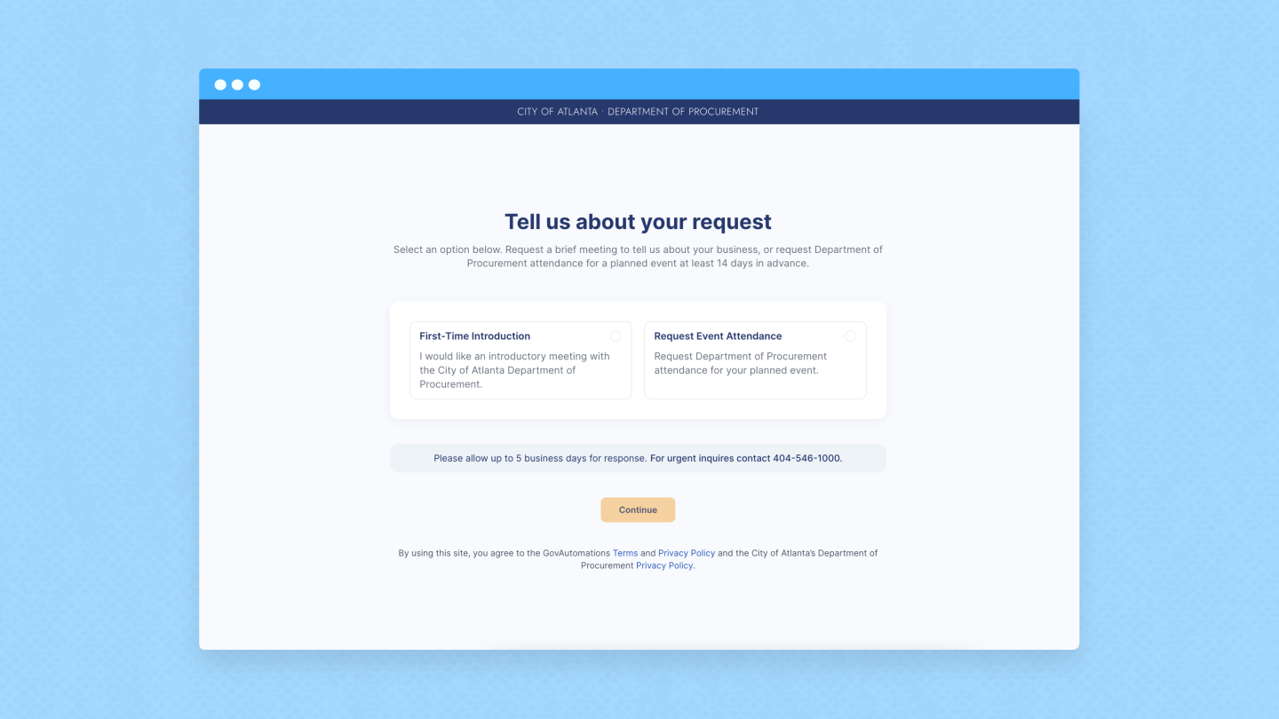 “GovAutomations Procurement is a portal that facilitates two things: First, suppliers can request a meeting with the Department of Procurement and explain who they are, what they do, and why they want to meet,” explains Justin. “And second, external companies can invite the Department of Procurement to attend and speak at their events. We built a gateway to bridge those introductions. After all, municipalities win when they have more qualified suppliers engaged with them and bidding on their projects.”