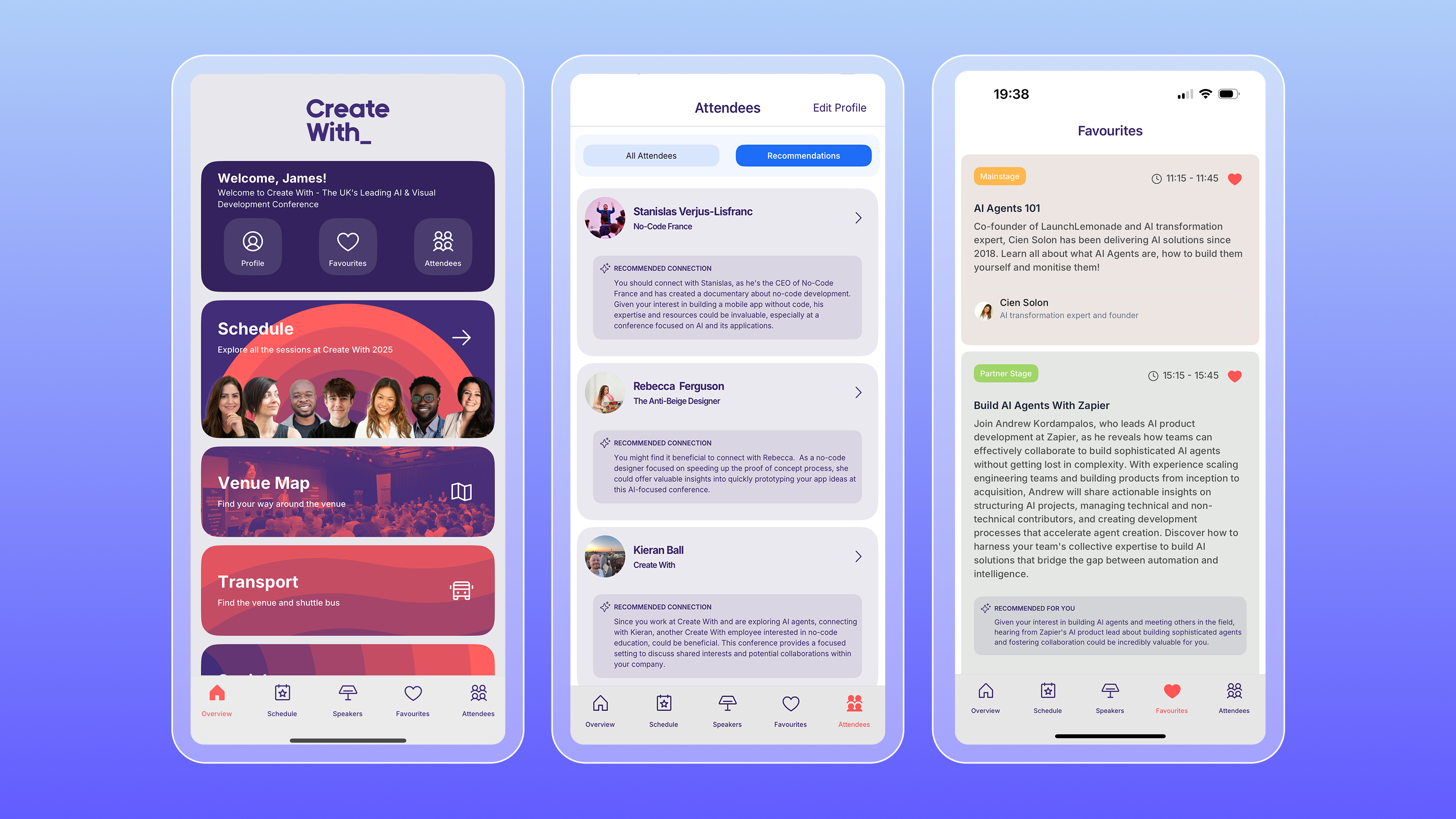 When James Devonport and Kieran Ball organized their first UK no-code conference in 2024, they cobbled together various tools to manage 170 attendees. One year later, their rebranded Create With conference doubled to 350 attendees — and this time, they powered everything through a custom platform built entirely on Bubble — including a mobile app they launched in just three days. The result: a 95% adoption rate for an app category that’s traditionally “one of the most hated apps in the world.”