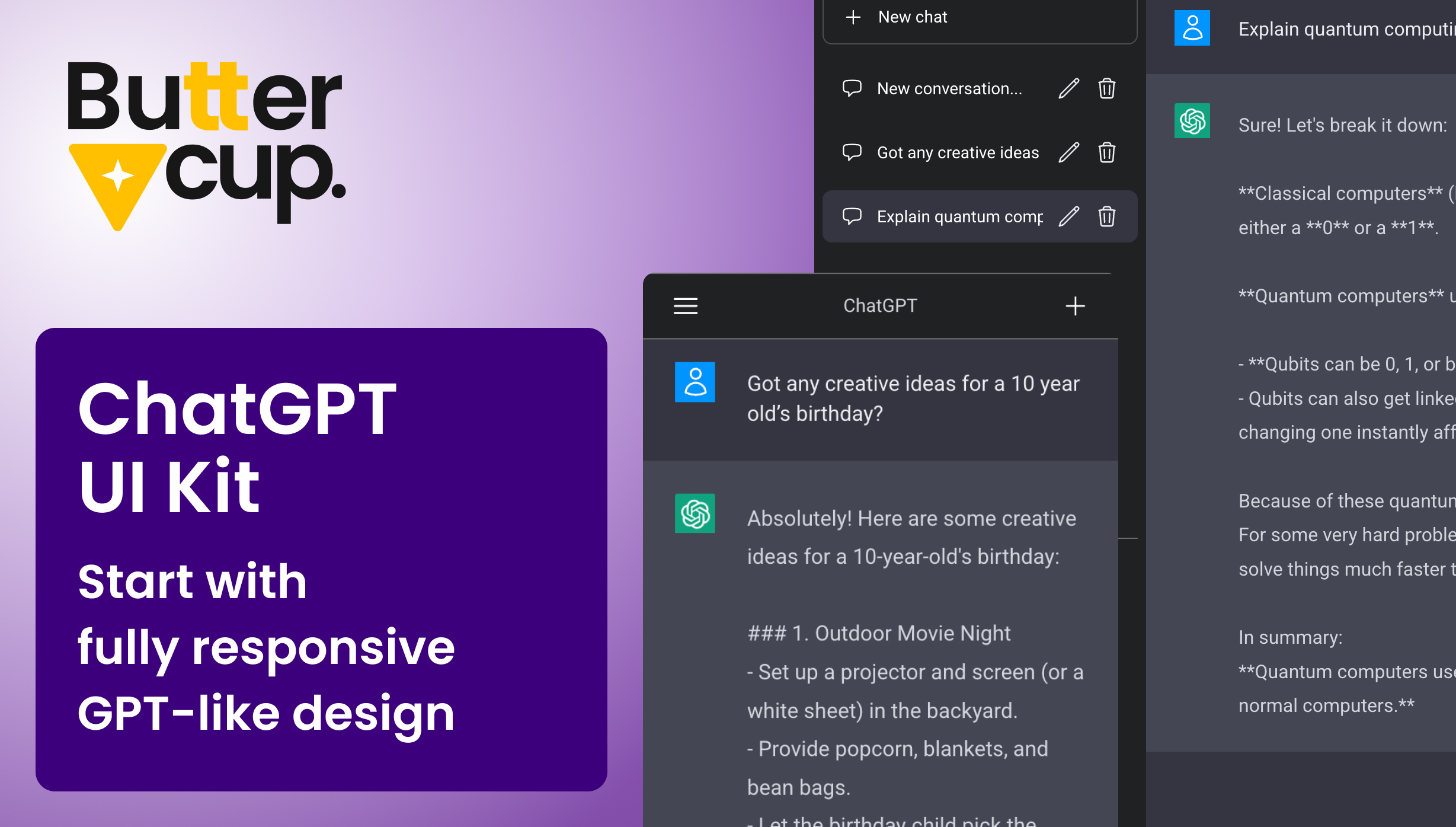 This is a clone of OpenAI's ChatGPT, built as a no-code UI Kit template. It doesn't include workflows and ready for your customization.